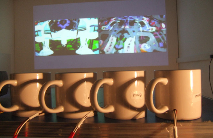 arduino | LDR | mylar speakers | coffee mugs | projector | Max/MSP+Jitter |